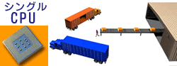 荷物の積み下ろし作業に例えると、【 1人 】で作業するため【 1台 】のトラックから【 ひとつ づつ 】しか荷物を降ろすことができません。
