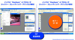ハイパースレッディングを搭載したパソコンなら、画像フィルタを短時間で適用するので作業が19%高速化!