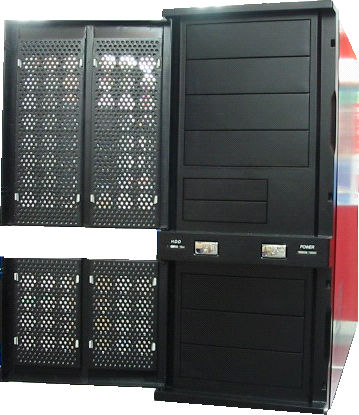 〔 BBS_前面Open 〕 ブラック&シルバーだとこんな感じ。はてさて、一体何を搭載させましょうか。ファンコンだとパネル閉まらなさそう。 |
