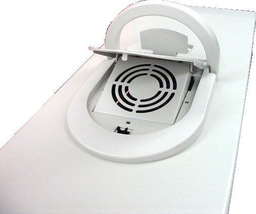 〔 IW_ファンOpen 〕 その後ろ側に上部FANが隠されているのもお約束だったりして。上部の8cmファンは搭載済なので排熱も安心です。 |