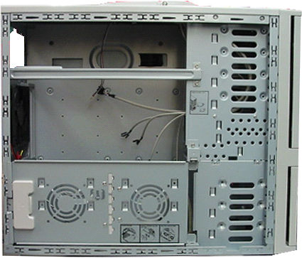 〔 IW_内部 〕 内部はこんな感じ。サイドに更にパネルありますけど、これはオプションで8cmファンを取り付けられるようになってます。 |
