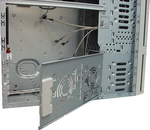 〔 IW_サイドファンパネル 〕 サイドファン用のパネルはこんな感じに開きます。この手のケースは全部空冷ファンつけると爆音になるので割り切っちゃいましょう。 |