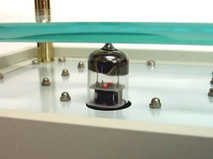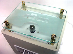 真空管の上にガラス板を設置、「真空管」の存在を更に引き立てています。