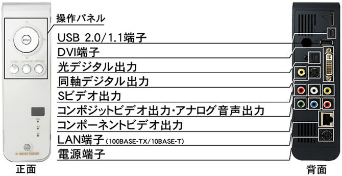 DC-MC35UL2本体、リモコン、コンポジットAVケーブル(黄/白/赤)、ACアダプタ、電源ケーブル、縦置き用スタンド、リモコン電池、USBケーブル(A-miniB)、NDASドライバCD-ROM、保証書兼クイックスタートガイド |