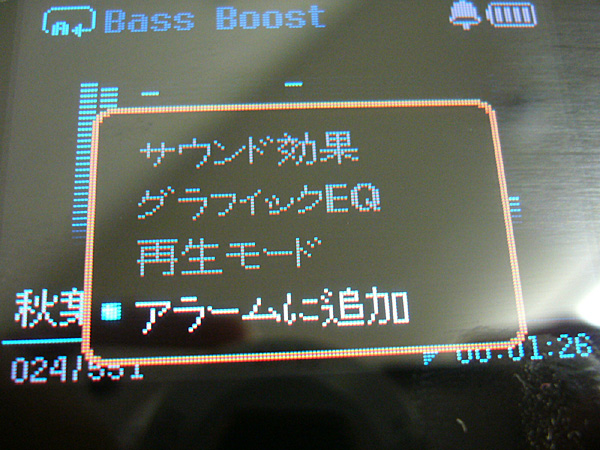 アラームとして使いたい曲を、再生画面から「アラームに追加」を選ぶ。 |