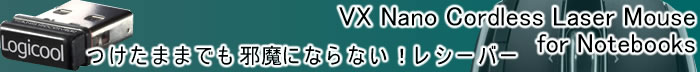 ウルトラポータブルなLogicool VX Nano Cordless Laser Mouse for Notebooksは、接続したままでも邪魔にならないナノレシーバーを採用。いったんノートPCのUSBポートに接続したら、つけていることを忘れてしまうほどのサイズ。