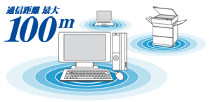 出力クラスClass1に対応しているので、最大100mの通信距離を実現。Class2(10m)では届きにくい広めのオフィスでも余裕をもって使えます。
