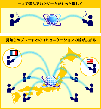 - ・今まで対戦相手がまわりにいなくてひとりで遊んでいたゲームも、全世界から対戦相手を探せる。