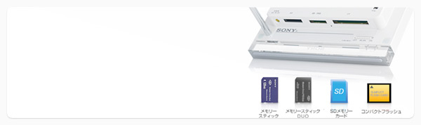 - メモリースティック、メモリースティック PRO、メモリースティック Duo、メモリースティック PRO Duo、SD・SDHCメモリーカード、コンパクトフラッシュ