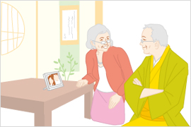 たとえば、「CP1」本体を離れて住む自分の両親にプレゼントすれば、内蔵メモリーや挿入したメモリーカードにあらかじめ保存しておいた写真をご覧いただけるだけでなく、ご家庭にインターネット環境*があればインターネットアルバムにアップした最新の写真をPCを使わずに、「CP1」だけで楽しむことができます。操作も簡単。PCは苦手…という年配の方でも、離れた家族の写真を楽しめます。 -