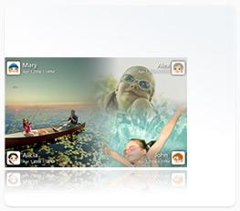 - どんどん増えていくコンテンツを整理し、素早くアクセスできる「フレーム機能」を搭載。「フォトフレーム」「シェアフレーム」「思い出フレーム」など、8種類のフレームに自分のアルバムや友だちのアルバムなど、お好みのコンテンツを登録できます。また、Home画面にはお好みのフレームを最大20個登録可能。一度登録すれば、次回からHome画面の好みのフレームをダイレクト選択するだけで、すぐに見ることができます。