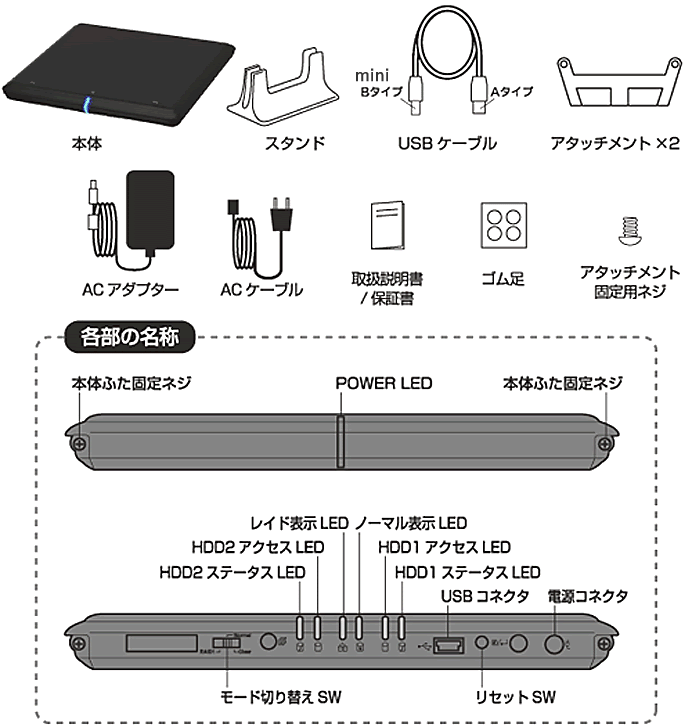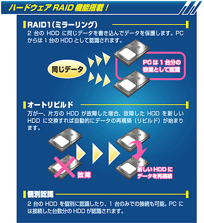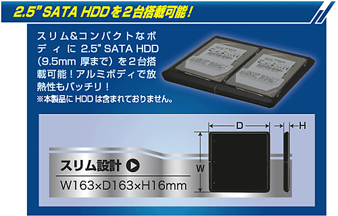 2.5インチ SATA-HDDを2台収納可能なUSB2.0接続HDDケース