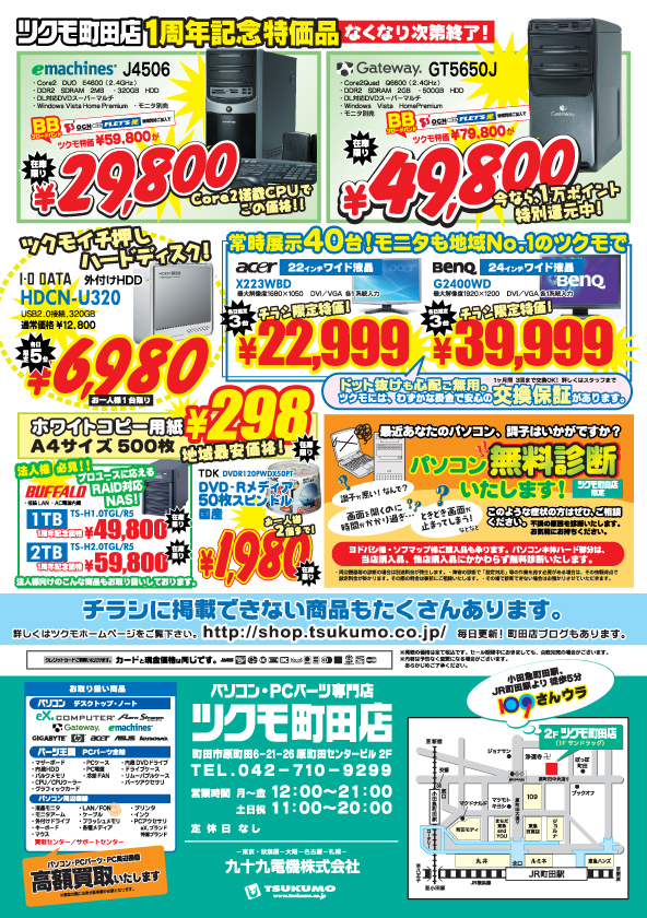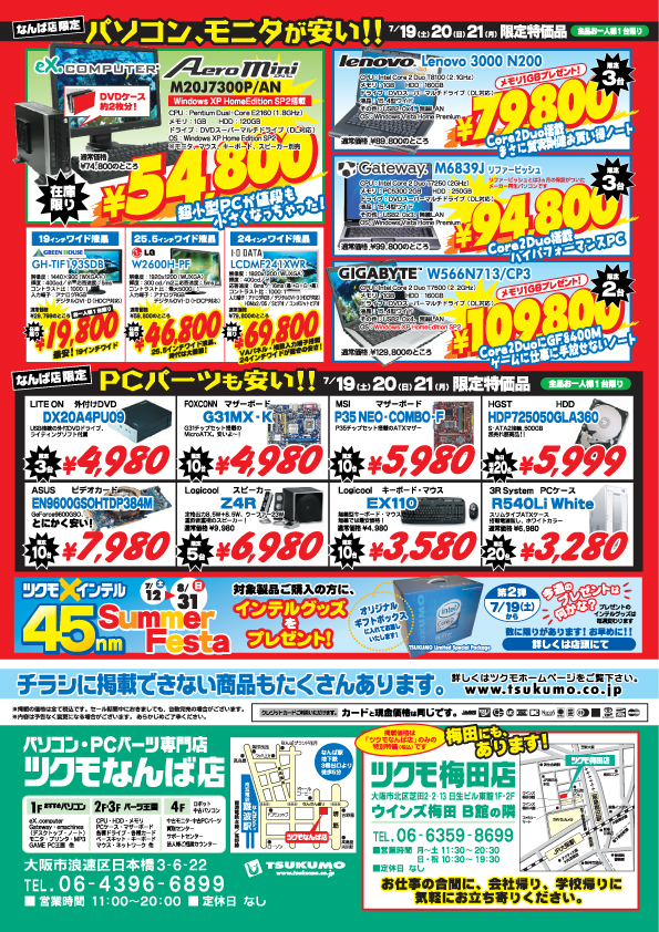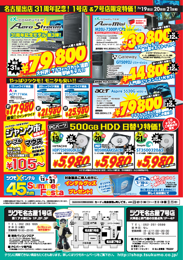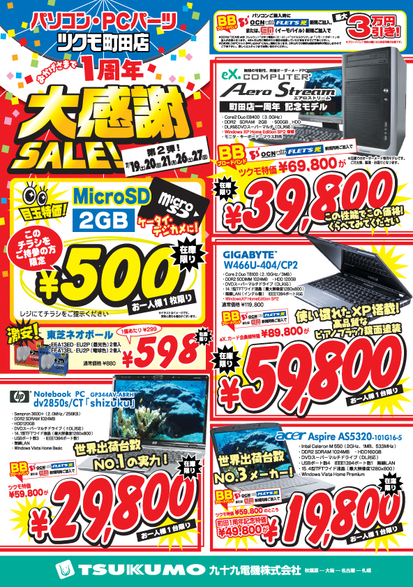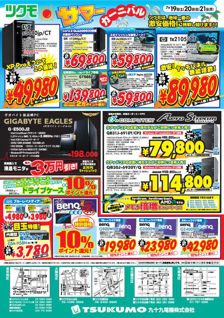 ツクモは、いつも地域一番の激安価格に挑戦し続けます。7月19日・7月20日・7月21日は、お近くのツクモ各店舗に是非お越し下さい。