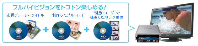 また、撮影したフルハイビジョン映像をたっぷり保存できるだけでなく、作成したオリジナルブルーレイはパソコンやブルーレイ対応のレコーダー/プレーヤーがあれば、テレビで鑑賞いただけます。 |