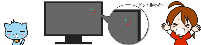 先ほどのお話にもありましたが、ドット抜けは液晶の宿命とも言われるもの。 ですから、モモコが今言った通り、3回の間に少なめ、もしくは気にならない場所にしかないものが手に入った時に交換完了!として頂くのがいいと思いますニャ。