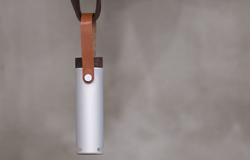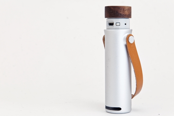 アルミ削り出しボディに天然ウォールナット材のキャップを配し、本体のストラップは本革を採用。シンプルながらも重厚な質感はラグジュアリーなホテルの客室に置いても雰囲気を損ないません